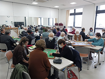 私たちは地域での健康づくりをサポートしています。高齢者のフレイル〈虚弱〉予防について、医療生協の職員や運動サポーターが健康体操・脳トレーニングを指導しています。趣味のサークル活動では様々な〈ペーパークラフト、縫い物、美容、習字、グラウンドゴルフ、ウォーキング、絵手紙、ボッチャ、健康麻雀、写経、カラオケ、ハーモニカ、大正琴、パッチワークなど〉教室を開催しています。